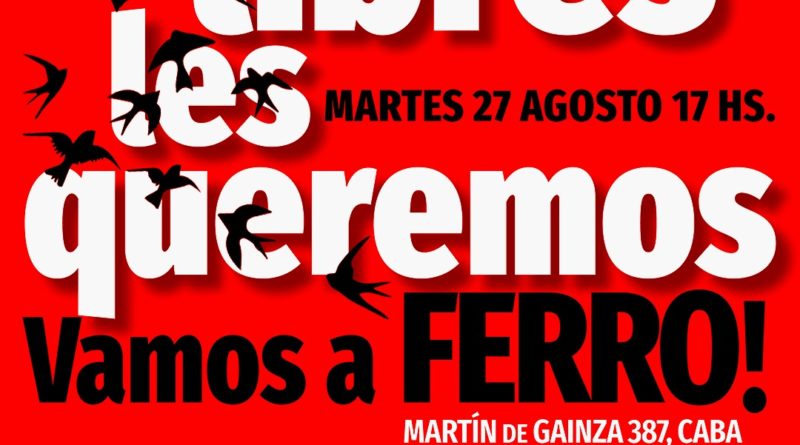 Porque “LIBRES LES QUEREMOS” vamos a FERRO, el martes 27 de Agosto a las 17 hs.