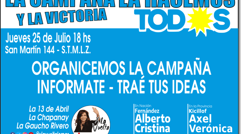 Read MoreFuimos muchos los que luchamos contra los 4 años de Macrismo y sus ajustes, su derrame y el regreso al FMI. Por eso trabajamos por la unidad del Peronismo y del campo popular para derrotarlo. El 27 de octubre de 2019 millones de compatriotas votamos a Alberto y Cristina para que nos gobiernen, luego lo ya sabido por todos el Covid y toda la campaña de Odio en las calles donde se pide al gobierno Nacional que no cumpla sus promesas de gobierno y que por el contrario aplique las políticas de quienes perdieron.