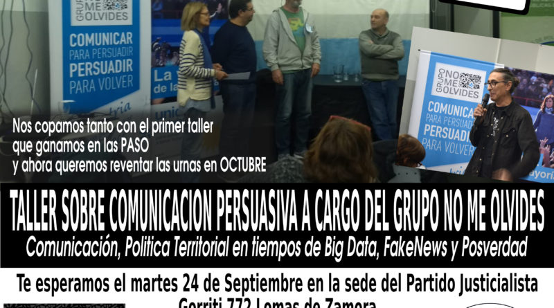 El proximo martes 24 de Septiembre 📆 realizamos nuevamente en Lomas el taller sobre Comunicación Persuasiva coordinado por los compañeros