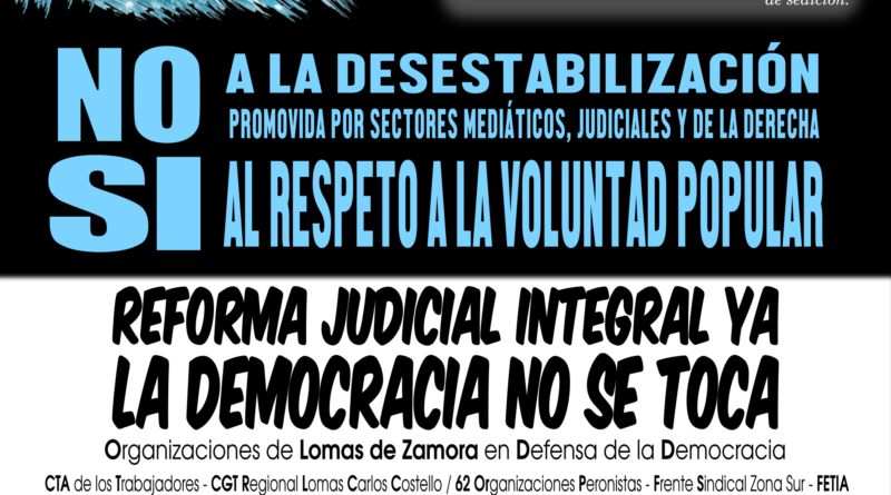 En Lomas de Zamora decimos NO a la desestabilización promovida por sectores mediáticos, judiciales y de la derecha SI al