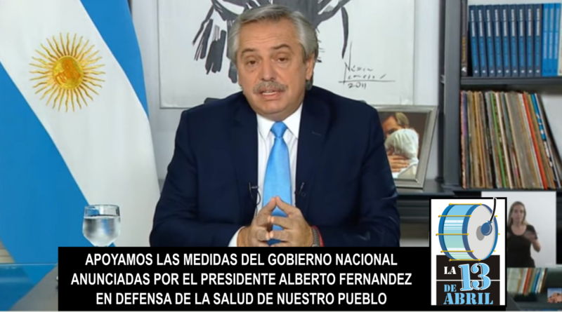 APOYAMOS LAS MEDIDAS DEL GOBIERNO NACIONAL ANUNCIADAS POR EL PRESIDENTE ALBERTO FERNANDEZ EN DEFENSA DE LA SALUD DE NUESTRO PUEBLO