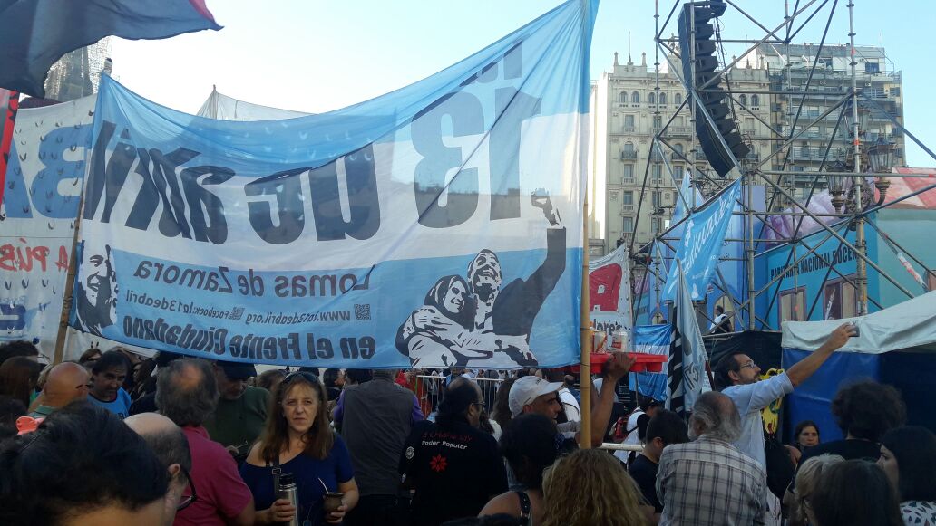 El lunes Primero de Mayo celebramos en la calle el dia de los trabajadores y como lugar se eligió hacerlo en la Plaza Congreso, frente a la Escuela Publica Itinerante donde cada dia desde su instalación los docentes dan clases sobre como luchar y resistir a este modelo neoliberal , hambreador y en contra de los intereses populares.