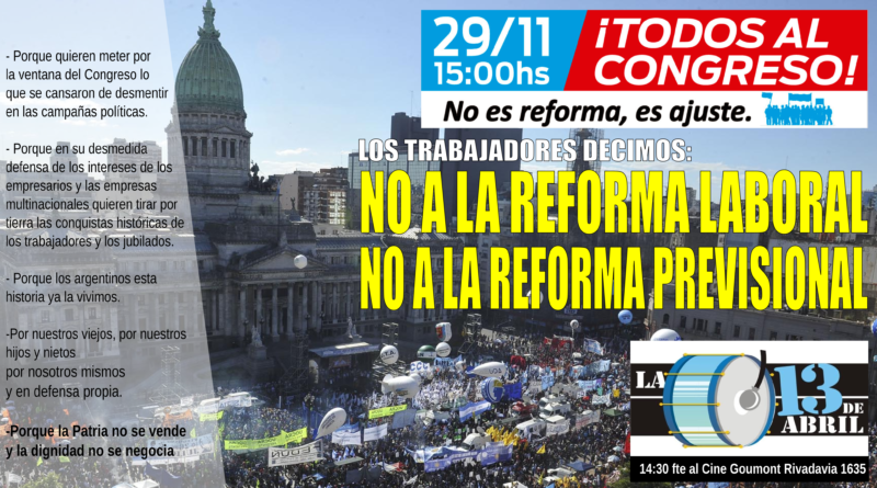 los trabajadores decimos no a la reforma laboral y no a la reforma previsional. el 29 de noviembre a las