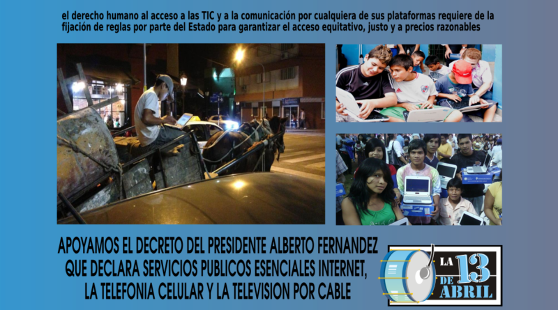 Se declara a Internet, la Telefonia Celular y a la TV Publica como Servicios Esenciales